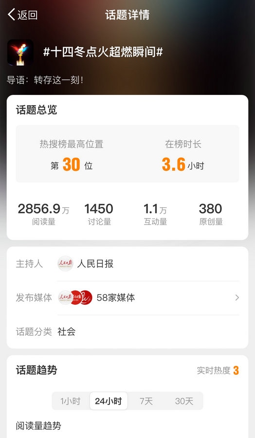 國內(nèi)多家主流媒體對(duì)開幕式進(jìn)行報(bào)道,話題#十四冬開幕式# #十四冬點(diǎn)火超燃瞬間#等話題登上微博熱搜榜,閱讀量近8000萬。