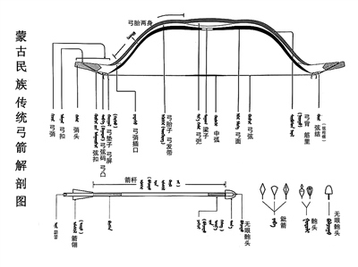 蒙古族傳統(tǒng)弓箭解剖圖