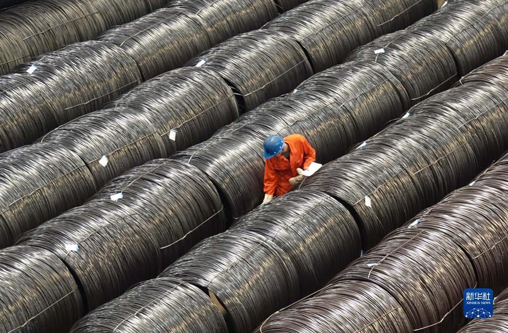 2017年5月15日,東北特鋼集團(tuán)工作人員在核對(duì)入庫(kù)的合金鋼大盤(pán)重線材產(chǎn)品標(biāo)識(shí)。新華社發(fā)(劉德斌 攝)
