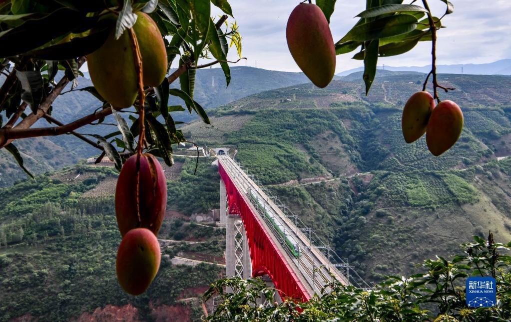 復(fù)興號(hào)列車通過(guò)中老鐵路元江特大橋(6月1日攝)。新華社記者 江文耀 攝