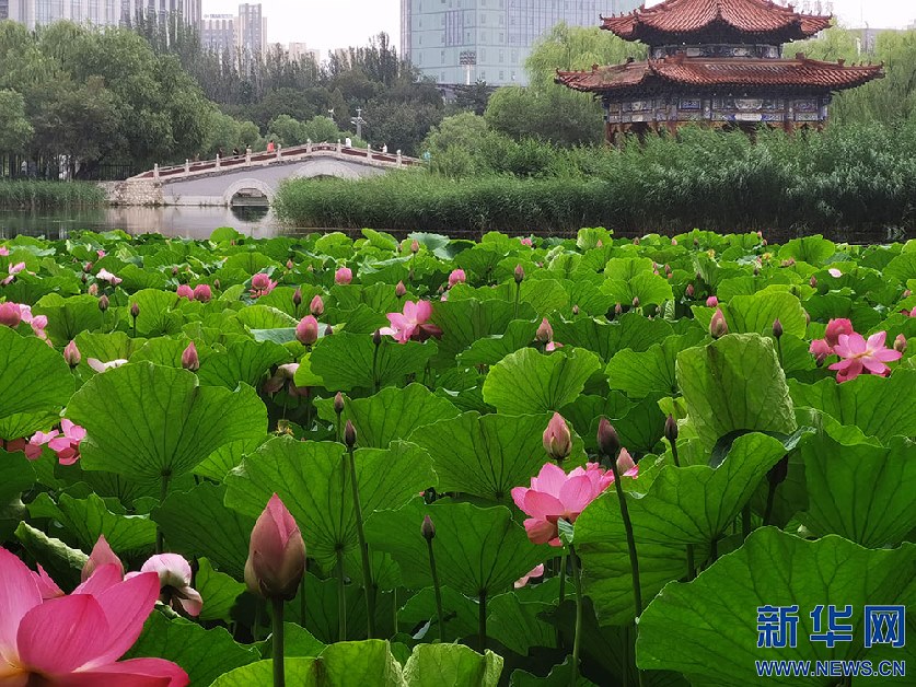 每年7月中旬,內(nèi)蒙古自治區(qū)呼和浩特市公園內(nèi)的荷花進(jìn)入盛開(kāi)期,市民們紛紛走入公園,欣賞塞外青城“接天蓮葉無(wú)窮碧,映日荷花別樣紅”的美麗景色。