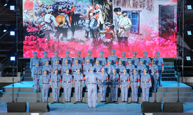 “唱支山歌給黨聽,我把黨來比母親,母親只生了我的身,黨的光輝照我心......”雨后的舞臺(tái)煥然一新,一首首耳熟能詳?shù)母锩枨?,把人們的思緒瞬間拉回歷史的長(zhǎng)河,手中揮舞著一面面鮮艷的五星紅旗,點(diǎn)亮了整個(gè)夜晚。